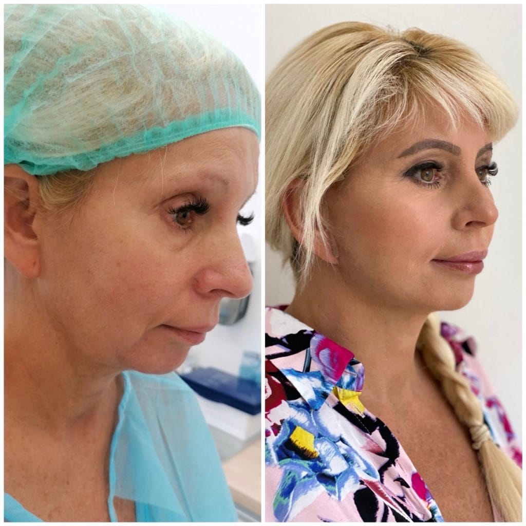 Vypnutí pokožky je viditelné ihned po zákroku. V případě potřeby lze ještě dokonalejšího výsledku docílit kombinací faceliftu s hydroliftingem, mezoterapií nebo Vital injectorem.